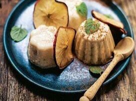 Яблоки 90гр Молоко 100гр Сахар 20гр Яйцо 0,5шт Крупа манная 10гр. Масло сливочное 5 гр Миндаль очищаем и обжариваем с сахаром, затем растираем (толкушкой или блендером). Ореховую массу заливаем молоком и варим 2-3 минуты, всыпаем манную крупу и доводим до кипения. Остужаем массу до комнатной температуры и добавляем желтки и яблоки ( чистим от кожи и режим кубиком). Взбиваем белки и всё перемешиваем, получившуюся массу выкладываем в формы ( сказанные маслом) и варим на пару до готовности. Пудинг подаем с соусом,джемом или сгущёнкой.