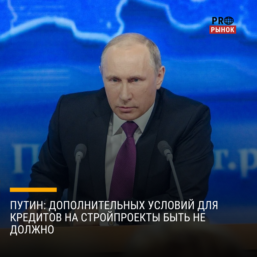 Президент РФ Владимир Путин заявил, что никаких дополнительных условий для выделения кредитов на реализацию строительных проектов быть не должно.