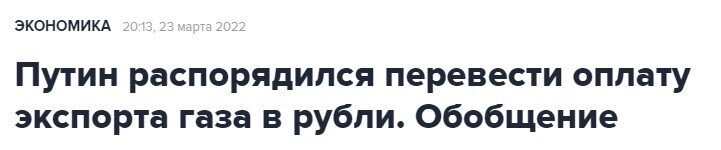 Вчера вышла новость о том, что президент РФ распорядился перевести расчеты за природный газ с "недружественными странами" в рубли. В дальнейшем поступило уточнение, что речь касается не только газа, а вообще экспорта любой продукции из России. Было подчеркнуто, что принципы ценообразования и другие условия поставок по заключенным контрактам остаются прежними, меняется лишь валюта расчетов. А Центральному банку поступило распоряжение в течение недели разработать процедуру покупок рублей зарубежными компаниями для осуществления расчетов. Фактически, Россия таким шагом в одностороннем порядке изменяет условия действующих контрактов - "Газпрому" уже также поступило распоряжение внести соответствующие изменения. В этом месте многие думают: "Но и они что-то там изменили, заблокировав нас санкциями". Ок, допустим. Первый и главный вопрос: какие финансовые преимущества это дает России? Ответ - никаких. Объясню подробнее. Как было раньше? Зарубежный покупатель переводил валюту (доллары или евро