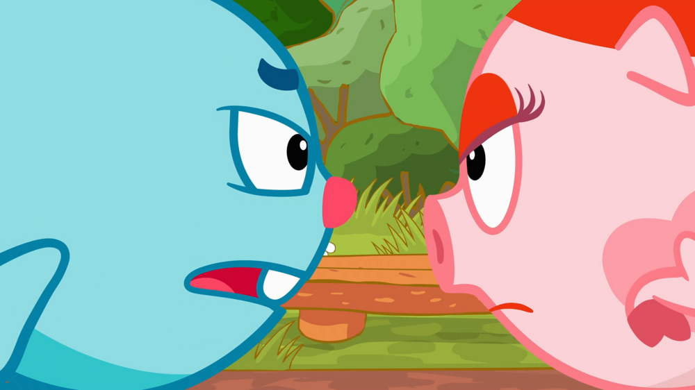 3)Слепые Крош и Ёжик-когда Крош смотрел в бинокль, то увидел чей то хвостик. Эта оказалась Нюша, которая стоит рядом с ним. Как Крош и Ёжик не заметили их, непонятно?