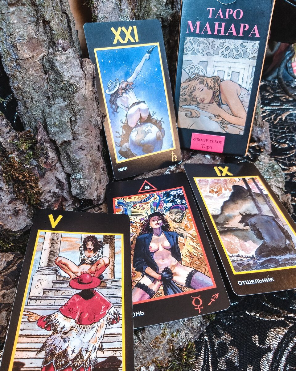 На фото представлена колода - Таро Манара. Это колода в моём мире занимает отдельный пьедестал. Она очень глубинная и откровенная и взрослая (не только по рисункам, но и на деле). С помощью этой колоды очень хорошо просматривать тему отношений, любви. Хорошо раскрывает не только взаимоотношения в паре, а также раскрывает тему "По какой причине у людей не получается построить их". Также с этой колодой, прорабатывается такие темы как: ▪️Ваша сексуальность (это не только секс. Сексуальность - это наша энергия жизни.) Как мы её демонстрируем окружающим и как сами к ней относимся. Есть ли блоки и зажимы. На что сливаем свою жизненную энергию. ▪️Тема "Ваши травмы" - нет людей без травм (осознает человек это, отвергает это. Они всё равно у каждого есть. И они влияют на нашу жизнь). Если с травмами не работать и их не разберать. То в своей жизни что-то изменить к лучшему, крайне тяжело. В каждой травме, есть свой ресурс. Вот его и нужно доставать. ▪️Также через эту колоду хорошо прораба