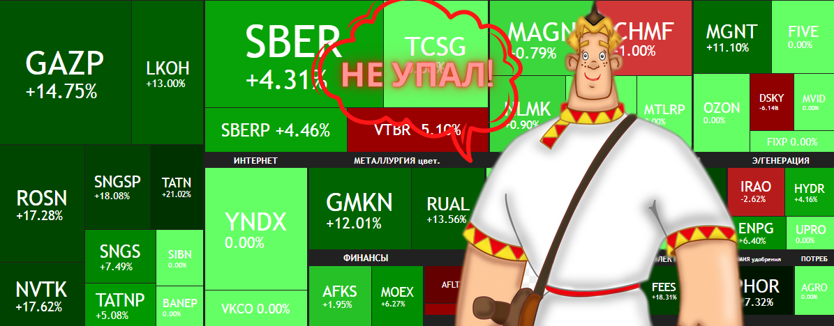 Также, было достаточно мало продавцов - они разгружались в первые минуты торгов. Некоторые бумаги, такие как Алроса, Фосагро и Новатэк активно выкупали частники.