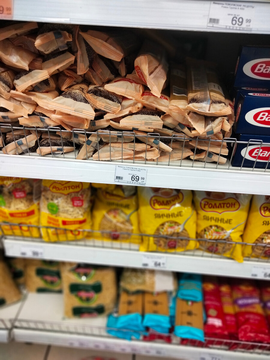 Доброго дня! Для тех, кто не в курсе, "Гулливер" - это наша сеть супермаркетов, которая насчитывает больше ста магазинов, если не ошибаюсь, и есть у наших соседей. Чуть выше по уровню, чем Пятерочка, но без изысков. Гулливер у меня рядом с работой, поэтому туда заглядываю чаще. Ну, хлеб-молоко-макароны. В последнее время хожу смотреть, как обстановка с ценами. И Гулливер в этом плане не радует, конечно. На первом фото макароны собственной торговой марки. Появились совсем недавно. На прошлой неделе эту пачку спагетти, кстати неплохих, я покупала за 37 рублей со скидкой. Без скидки ценник был на 60. То же и с Роллтоном. С акциями макаронных изделий нет вообще, кроме совсем уж дешевых. Эта "социальная" цена на растительное масло вообще ввергла в недоумение. Давно ли "Миладора" стоит дороже ста рублей? Я, конечно, не вспоминаю те времена, когда она стоила от силы 60-70, хотя было это совсем недавно. Однако 135 даже не за литр, а за 0,9 - это уже перебор. А уж пометка, что это товар с соци