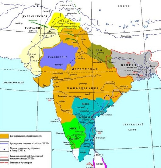 В первой половине XVIII века под управлением способных губернаторов Пондишери заметно вырос и развился. Знаменитый французский губернатор Пондишери и Французской Индии Жозеф Франсуа Дюплеи после своего прибытия к месту службы в 1741 году начал лелеять планы создания Французской Империи в Индии, но его начальство не проявило к этому интереса. Французские амбиции пришли в столкновение с британскими интересами, и в Индии начался период политических интриг и военных стычек. Под командованием маркиза де Бюсси-Кастельно армия Дюплеи успешно контролировала зону между Хайдарабадом и мысом Коморин. Однако в 1744 году в Индию прибыл англичанин Роберт Клайв, положивший конец мечтам Дюплеи. После поражения и провала мирных переговоров в 1754 году Дюплеи был отозван во Францию. Несмотря на соглашение между Францией и Англией о невмешательстве в местную политику друг друга, интриги продолжались. В 1756 году французы подговорили бенгальского набоба Сирадж уд-Даулу напасть на британский Форт-Уильям в Калькутте. Это привело к битве при Плесси, где англичане наголову разгромили как набоба, так и его французских союзников, и распространили своё влияние на всю Бенгалию.