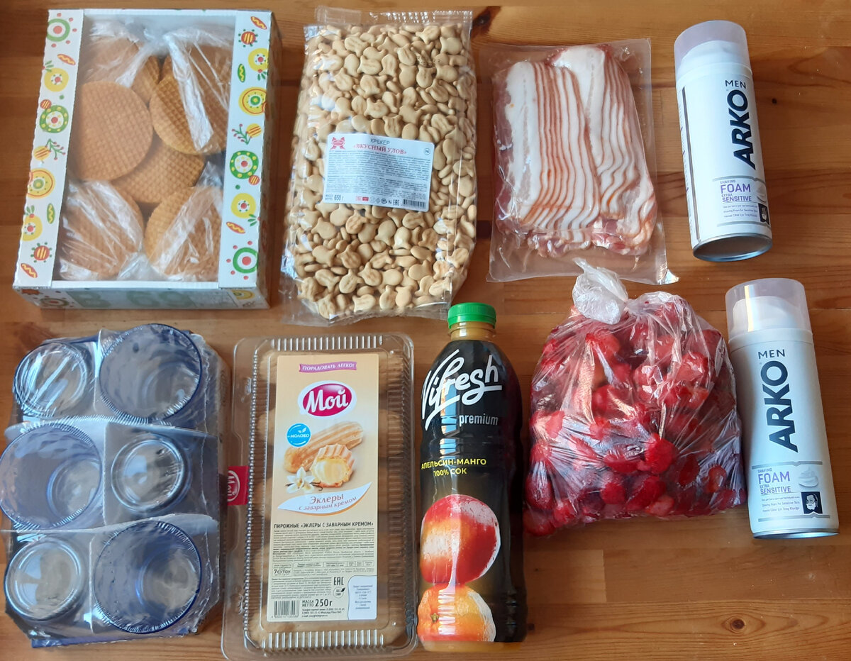 Всем добрый день, дорогие читатели! Сегодня будет обзор моих покупок из #светофор магазин Сразу скажу - полки пустые. Еще более пустые, чем я показывала в прошлый раз. Но тем не менее, вышла я с полной тележкой. Поехала спонтанно. Нужна была зубная паста. Хотелось купить грибов, да и вообще посмотреть, что есть в продаже. Там же никогда не знаешь, что попадется. Каждый раз - как в первый раз. Был очень ограниченный выбор печенья, плавленой Виолы нет уже давно, зубной пасты нет, зато появился Бимакс - 6 кг за 360 руб. Пустые полки в отделе консервов овощных, рыбные есть. В общем, в Светофоре покупаешь то, что есть на данный момент в продаже, со списком туда идти бесполезно. и вот все мои покупки (два фото): на втором фото - то, что точно куплено в запас и не будет съедено в марте 100%. Но сумму пока буду общую считать до конца марта. Ну, поехали, посмотрим покупки подробно. Была в продаже пена для бритья. Большие флаконы по 400 мл для чувствительной кожи. Взяла 2 шт. Также купила