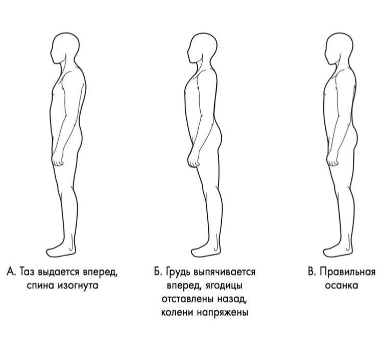 Жиру свойственно помимо всего прочего скапливаться в слабых местах. Ведь жир имеет защитную функцию. Посмотрите на фото. Изображено 3 варианта расположения таза. Нас интересует вариант, когда таз смещён вперёд (человечек слева). Причинами могут быть разные, но суть одна ⬇️ НЕПРАВИЛЬНАЯ ОСАНКА и слабые мышцы ЯГОДИЦ