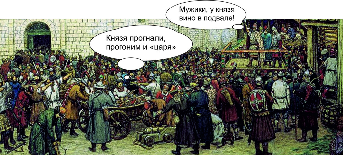 - И еще, дядя Василия Дмитриевича, Владимир Храбрый, тоже бы мог преподнести сюрприз. Во время Тохтамышева нашествия он в Москве не остался, а то ли бился, то ли нет с татарами где-то под Волоколамском. В случае же с Едигеевым нашествием присутствие "обстрелянного" вояки в качестве командира гарнизона крепости оч-ч-чень добавляет к защите.