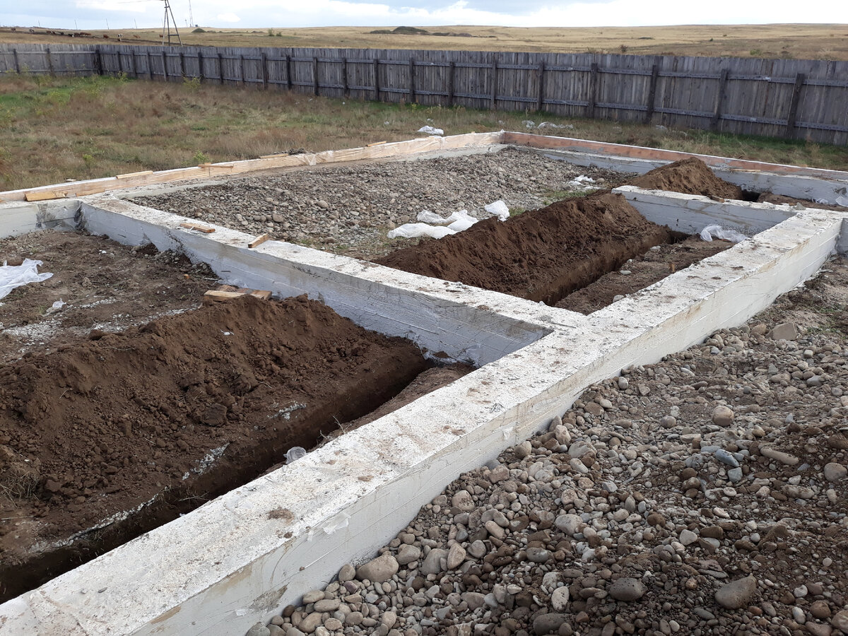 Здесь всё просто, выкопал траншею и положил на дно трубы, с уклоном 2 см на 1 м. Но так как у меня участок не совсем ровный, то перепад высот примерно 0,5 метра получился. Это видно и на уровне фундамента. Использовал 2 по 45* изгиб трубы. Использовал рыжие трубы канализации. Здесь труба для слива с кухни и гостевого туалета. А здесь будет основной слив из ванной комнаты. Туалет, стиральная машинка, душевая. Вот такая часть канализации получилась осенью 2019 года. В этом 2022 году (летом) буду делать септик переливной и заводить в него канализацию.