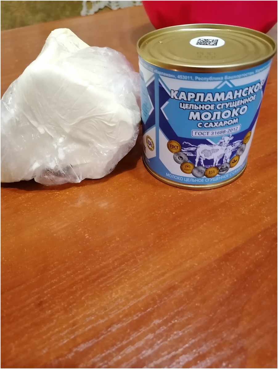 Для крема берем: 300 грамм сливочного масла и 1 банку сгущенного молока. Мягкое масло кладем в миску и добавляем сгущенку. Всё взбиваем миксером. Время взбивания зависит от жирности ингредиентов. Качественное масло взбивается быстрее. Консистенция готового крема должна быть эластичная, белая, плотная масса. Крем готов!