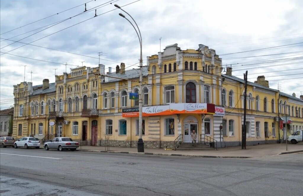 Адрес: ул. Советская, 88/14 💡Точный год постройки этого здания остался неизвестным. Краеведы предполагают, что оно было выстроено в период с 1894 по 1901 г. 💡Строение состоит из нескольких частей, фасады которых оформлены с использованием разных архитектурных приемов. 💡Здесь можно увидеть различные по размерам и оформлению окна, балконы с сохранившимися ажурными решетками. 💡Верхний угловой участок с фасадной стороны здания украшает маленький, декоративный третий этаж, представляющий собой тройки узких оконных проемов, выходящие на две боковые и угловую стороны. 💡Не менее интересно выглядит этот дом и со стороны двора, куда можно попасть, пройдя через арку с улицы Ленинградской. 💡На первом этаже этого здания помещение было сдано в аренду под колбасный магазин Менцеля и под столовую Ивана Рябова. 💡Последняя, нередко использовалась для проведения увеселительных мероприятий: игры в бильярд, групповые карточные игры. На втором этаже были обустроены квартиры, которые домо