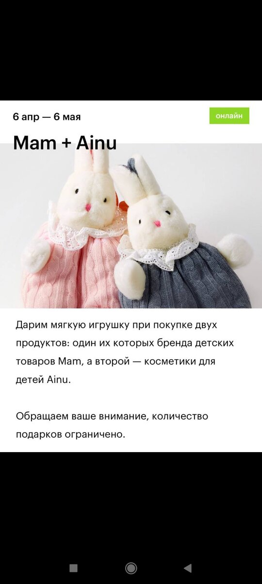 Пост скорее для беременяшек и молодых мамочек! Как вы знаете " Золотое яблоко" Вообще не щедр на подарки, но тут даже двойной бонус! При покупке двух средств мягкая игрушка в подарок! Подробности акции на фотографии! И конечно не забываем про промокод "ПОДАРОК" , который даёт нам дополнительную скидку 10 % 👍 Ну и конечно, доставка тоже будет бесплатной 😉
