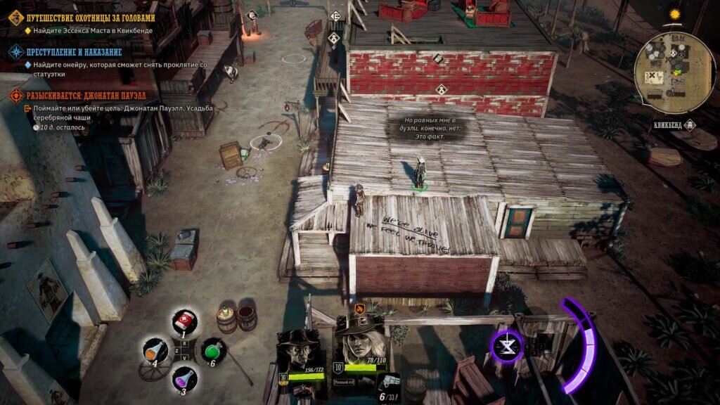 Weird West – изометрическая экшн-рпг с элементами иммерсив-сим про Дикий Запад, мистику, ведьм, зомби и за всю хурму от студии WolfEye Studios под руководством культового Рафаэля Колантонио. Студия молодая, Рафаэль у штурвала, а значит должны быть: реиграбельность, погружение в историю при исследовании, диалоги и, в общем, крутая подача. Безотлагательно и вдохновенно врываемся. 1/5 Наша героиня – Джейн Белл, охотница за головами, дама – руки пистолеты, коня наскоку оседлает, ну и дальше вы поняли. Она отошла от дел, живёт на ранчо с мужем и сыном. И вот в один ненастный день, с которого и начинается наше приключение, банда Стоячей Воды нападает на ранчо Джейн, убивает её сына и похищает мужа. Слёзы будут лить враги, а героиня берётся за оружие. Игроку предстоит отправиться по длинной цепочке зацепок, улик, слухов и догадок на поиски мужа. И отправной точкой будет городок Скворечень. В нём же работает давняя подруга Джейн – шериф Флора Олбрайт. Женщина – кремень, суровая, со своими секр