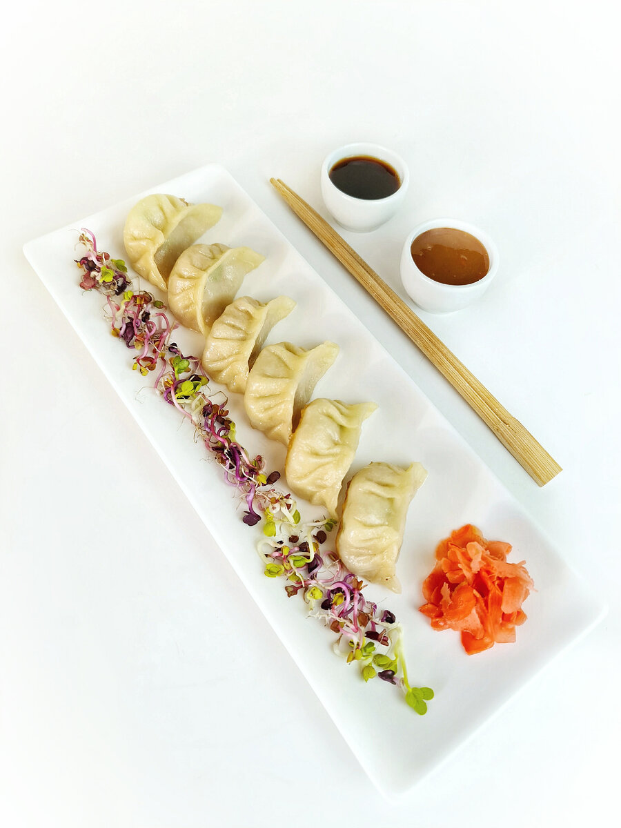 Солдаты, привыкшие к китайской кухне, привнесли в кулинарную культуру Японии новый рецепт. Главное отличие гедза от китайских пельменей в толщине оболочки. Так как китайские пельмени предназначены для варки в бульоне, тесто для них делают более толстым. Японскую вариацию чаще всего жарят, поэтому и тесто раскатывают очень тонко. Традиционно гедза наполняют свиным фаршем и мелко нарубленной капустой. Иногда вместо свинины используют говядину или курицу. Бывают и вегетарианские вариации, но чаще всего начинка все-таки мясная. Виды гедза различаются по способу их приготовления. Самые распространенные — яки гедза. Пельмени обжаривают на сковороде до золотистой корочки, затем вливают немного воды, накрывают крышкой и тушат на небольшом огне до готовности. Муси гедза — это гедза, приготовленные на пару, а суй гедза отваривают в воде или легком бульоне. Агэ гедза называются те, что обжариваются во фритюре. Сегодня приготовим Гёдза со свининой. Тесто: -Мука 400 г. -Крахмал 3 ст.л. (лучше взят