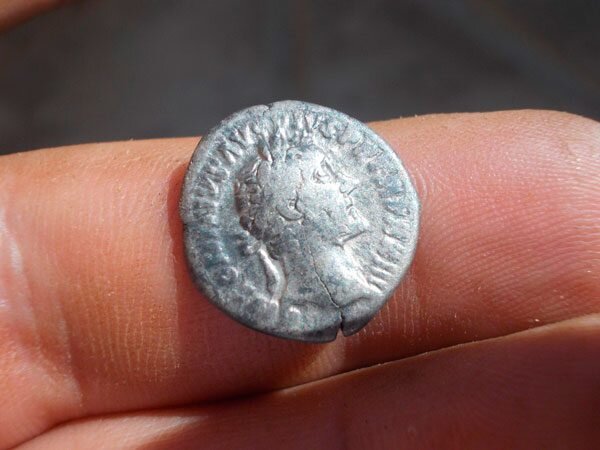 Одна из интересных находок им была сделана в прошлом году в Курской области, когда он работал в составе экспедиции РАН. Это сестерций — древнеримская серебряная монета, которая с 200-х годов до н. э. чеканилась из серебра, а с конца I в. до н. э.— из особой бронзы ярко-желтого цвета. Археолог объясняет местонахождение монеты так: