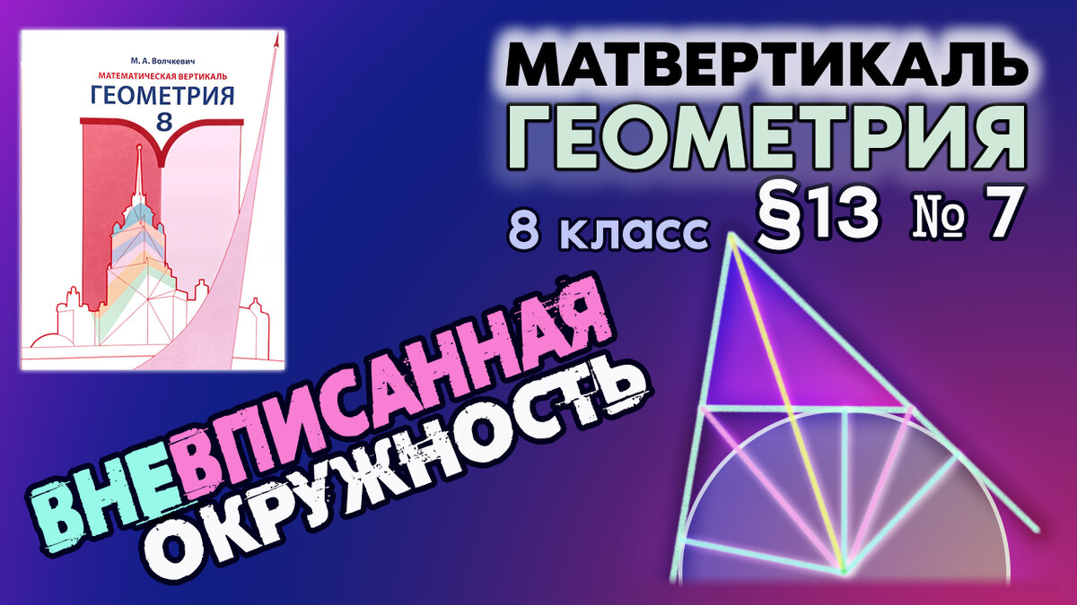 Видео разбор задачи № 7 (№13.7) из §13 по геометрии 8 класса проекта Математическая Вертикаль. Тема: ВПИСАННАЯ ОКРУЖНОСТЬ. ❗Теперь и в Telegram: http://t.me/matvertical