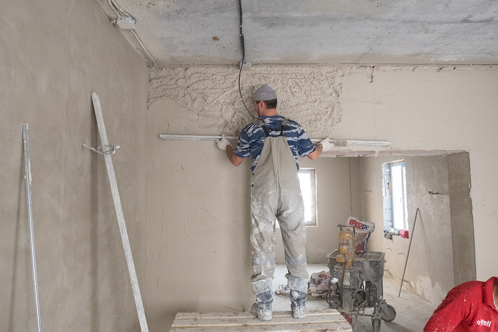 Давайте представим, что мы уже построили фундамент и практически достроили весь новый дом, но теперь пришло время наклеить обои, но что для этого нужно сделать? Правильно, устранить неровности на стенах при помощи штукатурки, но как это сделать? Шаг 1: Определить отделочный материал в зависимости от их компонентов, фактуры и консистенции. Для стен из одного и того же материала требуется индивидуальное решение, чтобы не навредить их структуре. Шаг 2: Подготовить следующие инструменты: Шаг 3: Подготовить стены, предварительно очистив их от старых отделочных материалов и пропитав антисептиком. Если элементы на стене отслаиваются, то нужно простучать по ним маленьким молотком. Но стоит предупредить, что у каждого материала есть свои нюансы. Шаг 4: Изолировать сырые и проплесневевшие участки стен. Также нужно найти источник излишней влаги и решить данную проблему. Затем влажные участки просушиваются, а плесень очищается при помощи антисептиков или растворов с хлорной известью. После обрабо