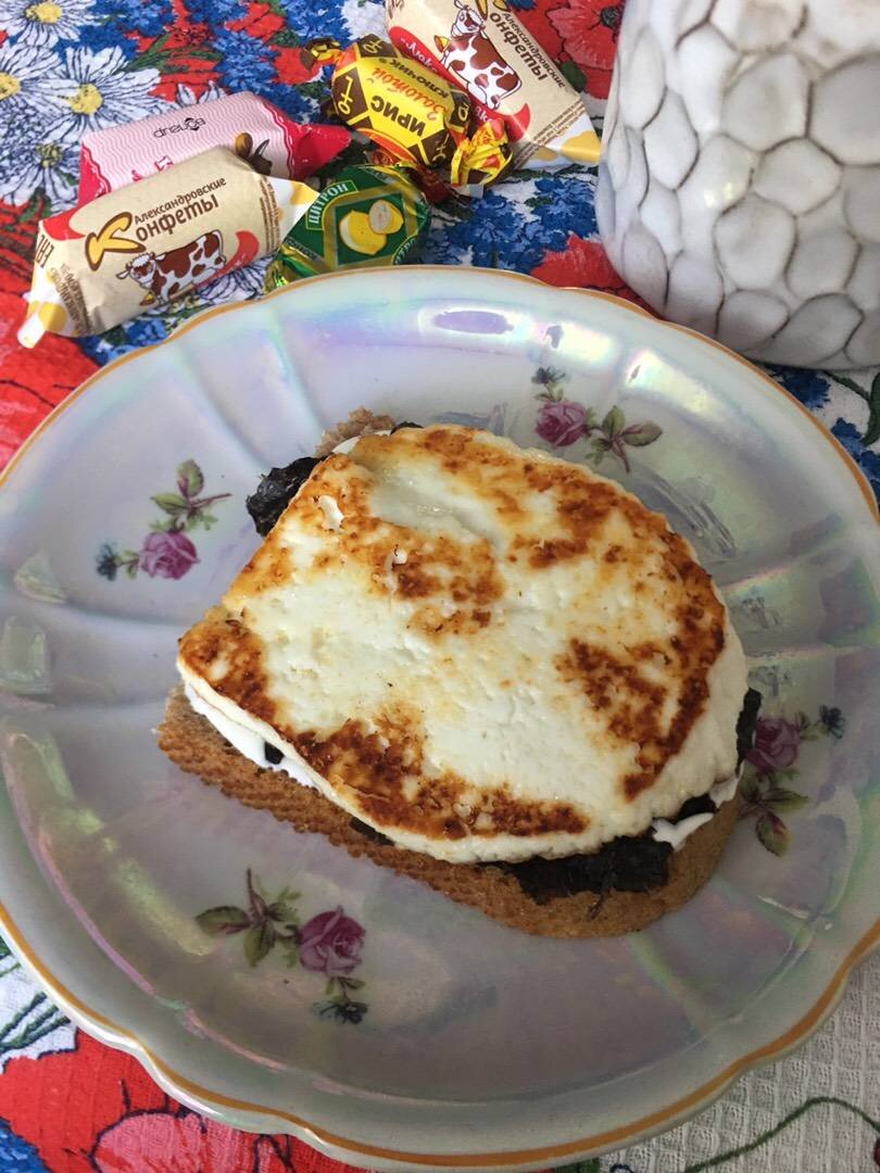 Рыбный вкус бутерброда, с домашним сыром придаёт морская водоросль ,,Нори’’, полезный и лёгкий, зарядит на все утро!)) #вегетарианские #водоросль Ингредиенты: ломтика свежего хлеба (бездрожжевой или пшенично-ржаной), домашнего сыра (лучше Адыгейский), половинки пласта морской сушёной водоросли,,Нори’’,можно заменить сушеной крапивой, сливочного масла для жарки, майонеза, кетчупа или томатного соуса, по вкусу Соль, перец Способ приготовления: На сливочном масле обжарить сыр, разрезанный на небольшие пласты с двух сторон до золотистой корочки На ломтики хлеба можно намазать майонез и соус, сверху посыпав размельченной сухой Нори. При подаче сверху Нори, уложить горячий сыр))) Приятного аппетита!)))
