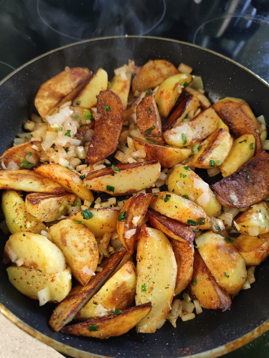 Добрый день! Жареная картошка это одно из немногих блюд, которые я могу есть каждый день. Это почти всегда вкусно и требует минимум продуктов. В то же время большая часть людей не знает как пожарить картошку идеально, у одних она пригорает, остаётся сырой внутри, у других она превращается в кашу от частых помешиваний. Сегодня рецепт картошки дольками, которая будет хрустящей снаружи и мягкой внутри. Идеальный гарнир готов! Приятного аппетита! Жду ваших подписок на канал. #жареная картошка #картофель #картошка по деревенски #рецепты #кухня #еда #кулинария #рецепты
