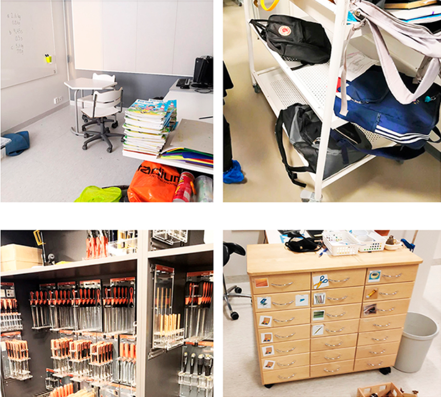 Гармоничное соотношение инвариантности и творческого беспорядка проявляется в сочетании строго локализованной персональной зоны и трансформируемого пространства. Трансформируемая мебель позволяет самим ученикам легко перестраивать свое пространство, передвигать и группировать мебель в зависимости от текущих потребностей, видов деятельности. Учащиеся в школе находятся в динамичном, постоянно меняющемся пространстве. При этом у каждого ученика есть персональное место для хранения личных вещей. Оно локально и постоянно - шкафчики размещаются вне класса или в вестибюле, запираются на ключ, при желании оформляются самим ребенком.