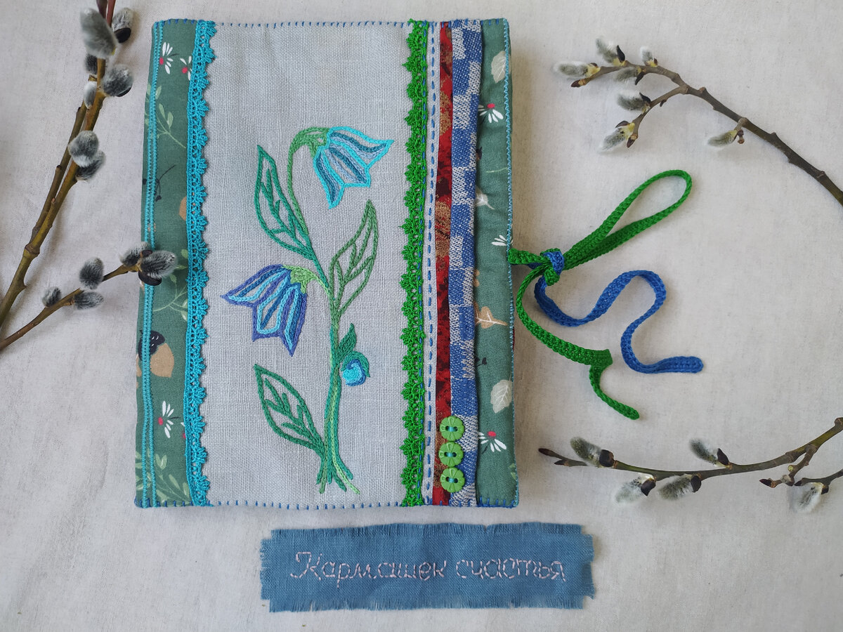Забавно, но я твёрдо решила, что на этот раз непременно прислушаюсь к коллективному разуму. Как проголосуют, так и будет. Демократия в отдельно взятом Кармашке. Пост был лаконичным: Есть у меня весенняя вышивка, цветик-колокольчик. Куда бы пристроить этот цветочек? И табличка для голосования с небольшим сроком. Посмотрите, какие варианты мне пришлось бы воплощать: Референдум показал один из самых ожидаемых результатов. Жилета я боялась прямо как огня - совсем не представляла этот вариант. Но если бы он победил, пришлось бы поднапрячь соображалку, да... Ура! - победил блокнотик, а я как раз люблю-обожаю софтбуки всяческие, вот и выстроила мягкую лоскутную полянку. Обложка с кармашками уже готова, можно и на блокнот, и на ежедневник надеть, она универсальна. Внутри, снаружи и в движении смотрите здесь: А ещё я думаю соорудить для этой обложки вставку-блокнот из кофейных страничек с волшебными природными фото. Вариации обложек смотрите по тегу #кармашексчастья_обложка все они р