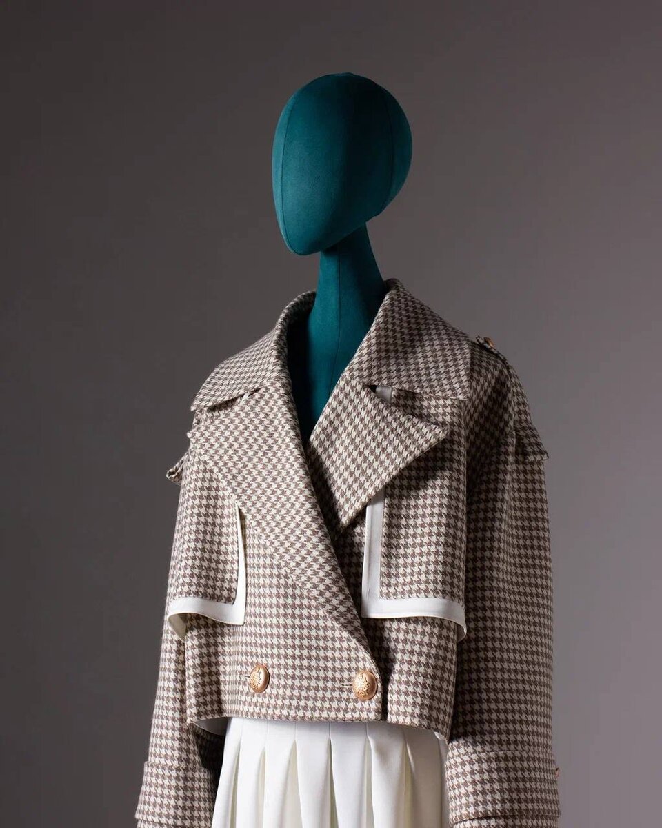 Укороченный жакет в мелкую «гусиную лапку» - отличная пара и для миди-юбки из плотного шёлка, и для классических брюк, и даже для джинсов. Жакет из шерсти или кашемира разных цветов выбирайте на сайте и в магазине Maison Adore: