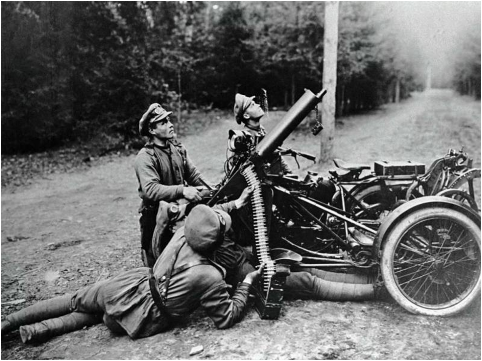 Лучшими зенитными средствами Первой мировой войны в Русской Императорской армии были 76,2-мм пушка образца 1900 года и орудие аналогичного калибра системы Шнайдера (образца 1909 года). Часто для решения задач противовоздушной обороны использовались самые обыкновенные полевые орудия, которые монтировались на специальные противосамолетные поворотные рамы. При этом в годы Первой мировой войны в стране разрабатывались самые разные средства ПВО, в том числе на базе мотоцикла с коляской, в которой на специальном станке устанавливался 7,62-мм пулемет «Максим».