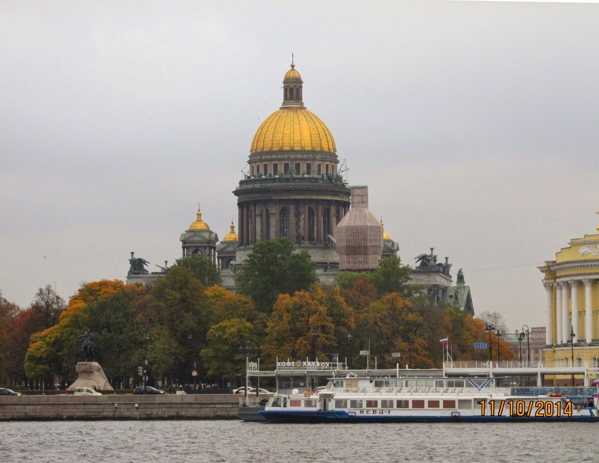 Сразу хочу сказать, что я не экскурсовод по историческим местам. Просто с командой спортсменов мы ездили на традиционные соревнования Кубок Петра Великого по спортивной акробатике. И в свободное время, которого было совсем немного, гуляли. Жили мы на Васильевском острове. Поэтому на Исаакиевский собор смотрели с другого берега Невы. А это фото сделано с Дворцового моста. Это, как раз, вид на Василеостровский берег. Вот мы и дошли до Дворцовой площади Вещи здесь... А где дети? Они ж акробаты )) Еще немного фото, без комментариев Справа шпиль Адмиралтейства, слева - купол Исаакиевского собора. Через Триумфальную арку выбираемся на Невский проспект. Величественный Казанский собор. Он прекрасен! Напротив Дом книги. Какая же красота! Идем к моему любимому Храму-на-Крови. Он завораживает! Вы находили герб своего края / области на стенах Храма? Мы нашли Герб нашей Вятской губернии!!! Еще взгляд .... и на набережную - слушать пушку в полдень! Вот она, Петропавловская крепость. И Василео