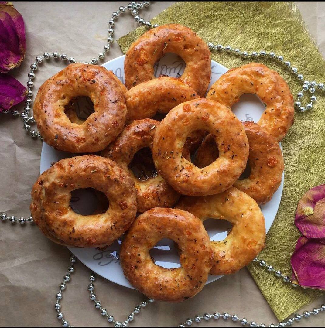 СЫРНЫЕ КОЛЕЧКИ пп 🥨184 ккал на 100 гр.🥨 БЖУ: 15,97/7,98/11,90 🔸На одно колечко ~40 ккал🔸 #створогом #выпечка #завтрак Ингредиенты: творог (у меня 5%), мука, яйца, сыр, специи, соль Способ приготовления: Творог смешиваем с яйцом и белком от 2 яйца (я использовала блендер). Добавляем муку и специи, хорошо перемешиваем. Добавляем тёртый сыр и замешиваем тесто руками. Берём по немного тесто, раскатываем колбаской и делаем колечко. Выкладываем на пергамент, смазываем желтком. Я ещё посыпала сверху прованскими травами. Отправляем в духовку на 25 минут при 200 гр.
