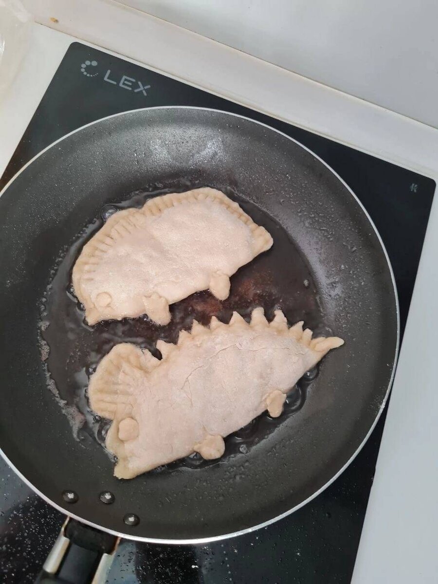 Чебузавры - обычные пирожки с мясом или капустой в виде динозавров. Дети будут в восторге Ингредиенты: гр мука, яйцо, вода, Соль, Чёрный перец, Фарш 400 гр, луковица Способ приготовления: Для начала жарим фарш. Посыпаем по вкусу солью и перцем, а так же добавляем одну мелко нарезанную луковицу. Пока жарится начинка, замешиваем тесто. Разбиваем одно яйцо, добавляем немного соли и хорошо размешиваем. Высыпаем муку, перемешиваем, добавляем воду, перешиваем. Когда тесто готово, даем ему отдохнуть 5-10 минут Когда фарш пожарился, а тесто отдохнуло, насыпаем на рабочую поверхность немного муки и хорошо ращминаем тесто рукам. Далее делим его на более менее равные части - заготовки для будущих чебузавров. Катаем из кусочка теста шарик и раскатываем скалкой. Далее выкладываем начинку и закрываем пирожок. Повторяем много раз. Когда налеплено уже много обычных скучных пирожков, из остатков теста мы делаем динозавров. Тут фантазия может пойти в разные стороны, ведь видов динозавров существовало мн