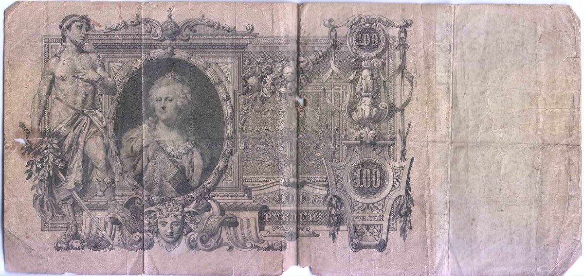 Часть истории Российской империи обеспеченная золотым эквивалентом. Не является антирекламой современным билетам. Приятная на ощупь, создаёт грустно-положительные эмоции гордости за Державу Российскую, тогда ещё империю. Рубль начала прошлого века и рубль нынешний отличаются весьма существенно. В 1897 году в России был введён так называемый «золотой стандарт» Витте, который действовал до начала Первой мировой. В 2014 году свободная конвертация российского рубля в золото прекратилась, и золотые рубли, из обращения были выведены. На сто рублей в царской России пенсионеры могли путешествовать по заграницам, что как известно доступно и современным дожившим до пенсионного возраста. На сто рублей в наше время не купишь бутылку водки объёмом 0,5 л, в царской России ведро стоило 1 копейку. Если у народа в 1910 году было сто рублей он(народ) любил царя и в современной России народ тоже "вспоминает" царя. Один из царей тоже вспоминает народ: "Билетов нет, но вы держитесь".Торг уместен 191 000 ру