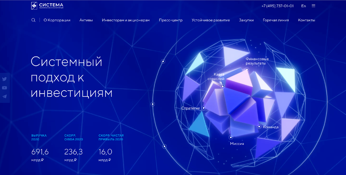 1. AFKS - Акционерная финансовая корпорация «Система». Крупный российский частный инвестор. Миссия АФК «Система» - Построение классической инвестиционной компании с многопрофильной экспертизой и позитивным трек-рекордом управления капиталами. Этой корпорации принадлежат весьма существенные доли в крупных российских бизнесах: Системе принадлежит 49,94% МТС, 62,2% Сегежи, 31,8% от OZON, 29,8% Группы «ЭТАЛОН», 95,5% сети медицинских клиник «МЕДСИ», 91,3% агрохолдинга «СТЕПЬ» и множество других компаний.