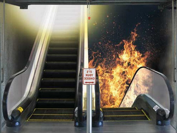 Мы идём по эскалатору, который едет вниз, а нам надо идти по нему вверх.