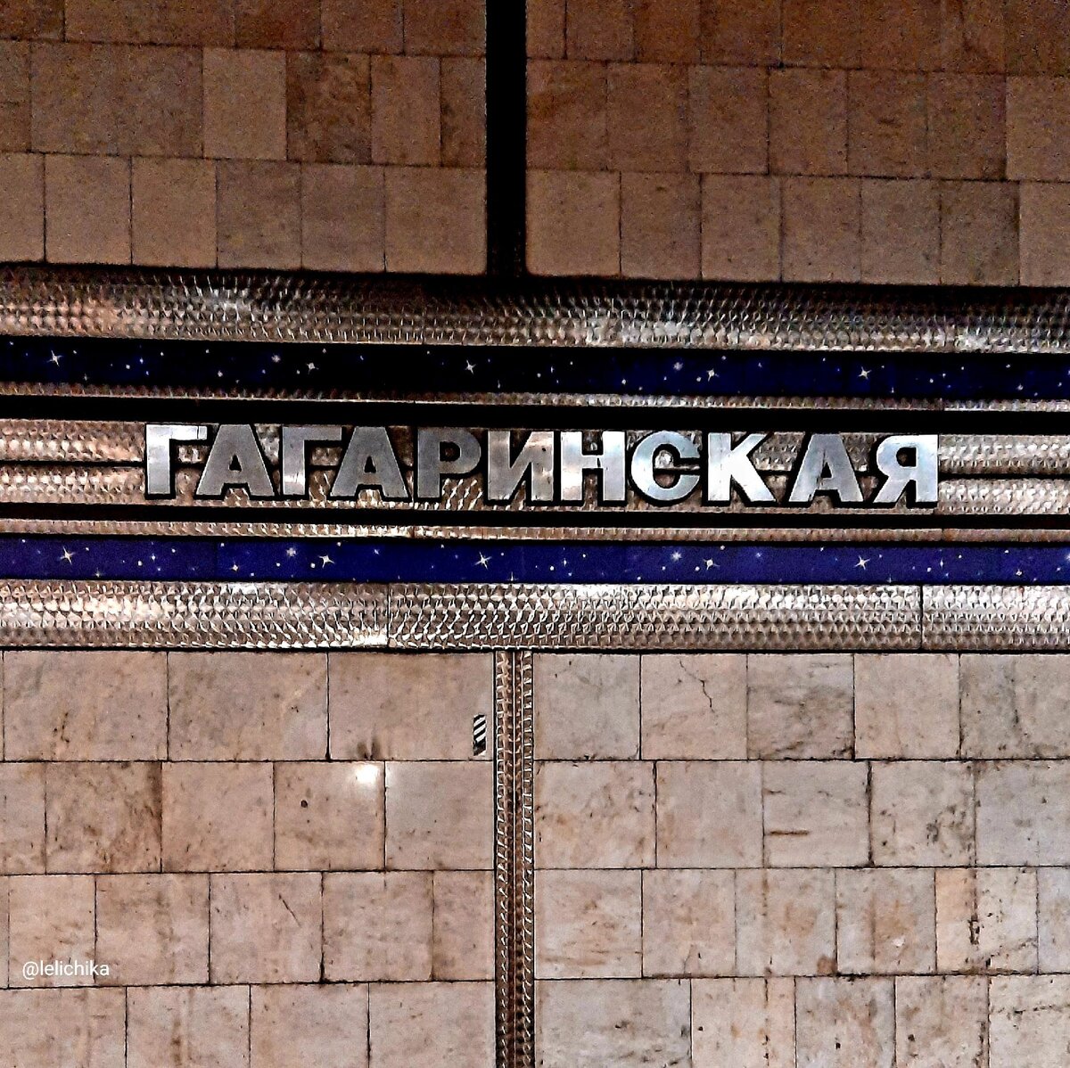 Но ещё с детства мне невероятно нравилась «Гагаринская». Космическо – мистическая, она сильно выделялась на фоне остальных станций. И почти всегда, когда мы с родителями ехали на метро, выходили на этой станции, чтобы я могла вдоволь налюбоваться ей. Она казалась настоящим подземным космосом. В отличие от других станций, на «Гагаринской» малолюдно. И можно хорошо разглядеть её оформление.