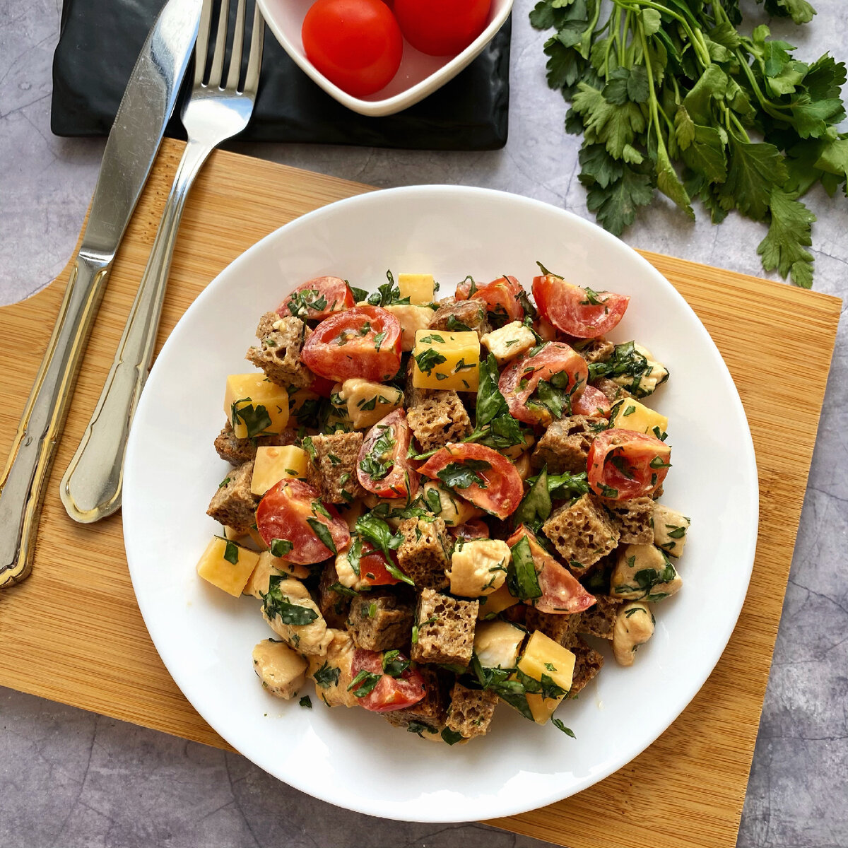 Идеальный салат на обед или ужин, желаете?) Если выбрать сыр с низкой жирностью, и «правильный» ржаной хлеб, то получится всего ~130кк/100г Не забудь поблагодарить👍🏻 Приятного аппетита!🙌🏼 Читайте также: САЛАТ ТБИЛИСИ #САЛАТ БАВАРСКИЙ #баварский салат #салат #рецепты салатов #рецепт салата #салат с сыром #салат с сухариками #салат с курицей #салат с куриной грудкой #рецепты