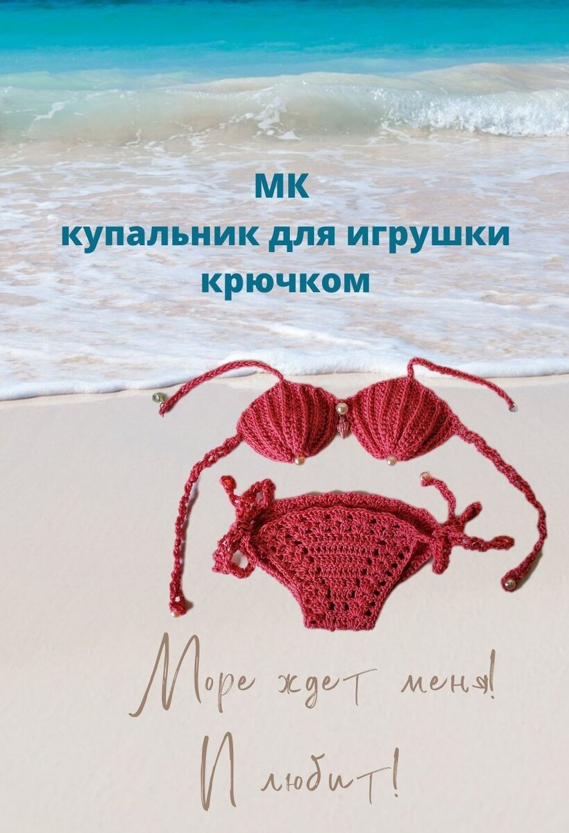 Скоро лето и наша Лалафанфан Мими с дочей будет ходить на пляж, а купальник будет незаменим. Мастер-класс купальника с описанием и схемами смотрите ниже👇 Купальник вязала из мерсеризованного хлопка Камтекс. Крючок взяла √2 (или любую другую пряжу 200м в 50гр, само собой без шерсти). Пряжа состоит из 4 скрученных ниток. Вяжется легко. Мне очень понравилось, как выглядит готовое изделие из этой пряжи. Получился очень позитивный купальник. Описание Начала вязать с трусиков Длина между ног трусиков 4 см. Вязание начинаю с передней части трусиков. Набрала цепочку из 10 ВП +3 ВП для подъема. Чтоб узнать сколько петель надо первоначально связать, я прикладываю набранную цепочку между ножками и должно до ножек остаться место, для обвязке. Дальше вязать по схеме 10 рядов (рис.1) Схема передней части трусиков Не обрываю нить, а продолжаю сразу вязать завязки 20 рядов по схеме рис.2 Схема завязок для купальника Присоединяю бусину и обрываю нить Далее присоединяю нить ко второй половинк