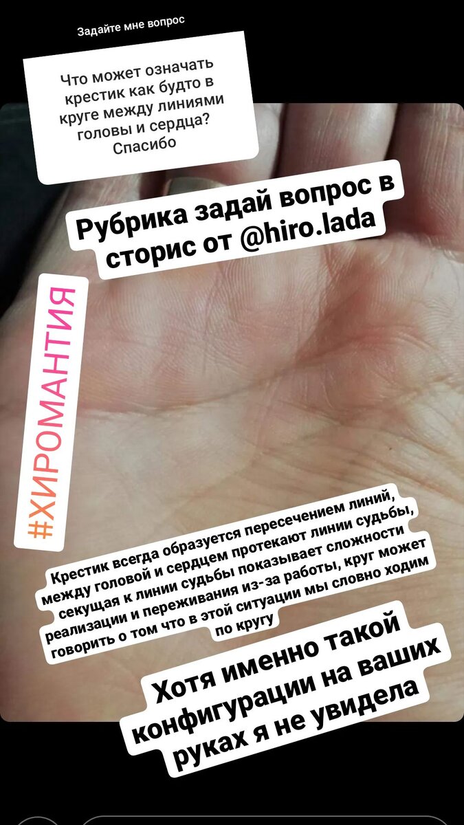Судьба- всегда манит людей, нам интересно что нас ждёт, и можно ли чего-то избежать, зачастую с этими вопросами люди обращаются именно к хиромантии. Поскольку одна из популярных соцсетей- перестала быть актуальна для жителей России, решила выкладывать ответы на вопросы о линиях и знаках в формате статей. Вероятно вы найдёте ответ на свой вопрос) Автор- хиромант Ионова Лада К сожалению рубрика в прежнем формате не поддерживается, однако