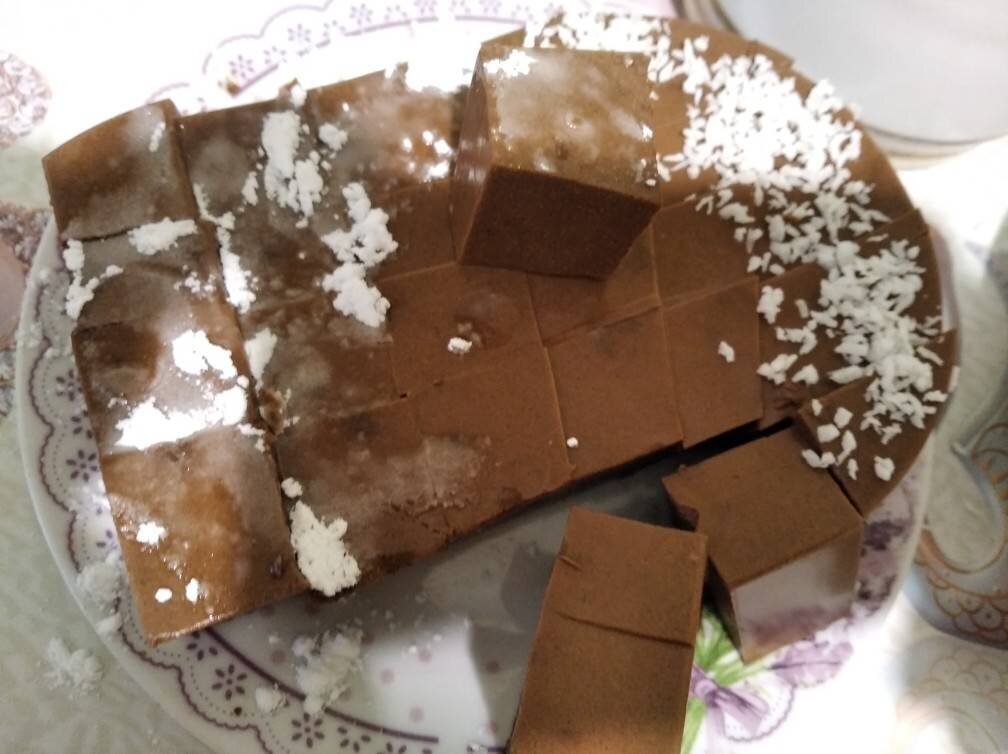 Молоко,цукор,Агар закип'ятити і проварити близько 2 -3 хв. Порізала шоколад, розтопила добавивши гарячу суміш с молоком в піалі,в мене не було какао,хоч воно є в рецепті але зараз такий стан що не все ще знайдеш,) тому розтоплений шоколад кладемо в молоко і виключаємо нашу суміш,краще варити в посуді з двійним дном,розмішуємо добре і розливаємо в формочку.