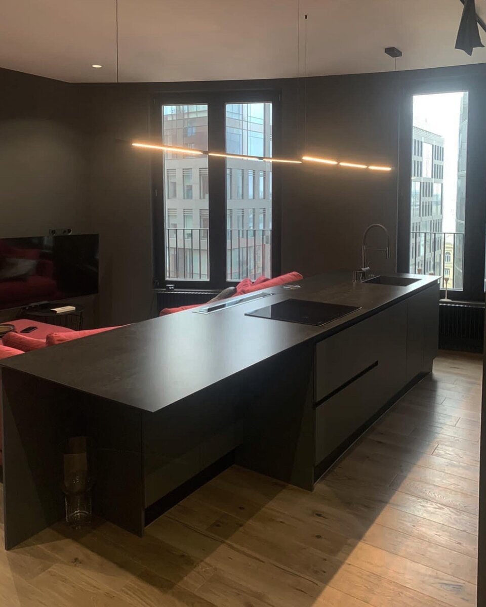 Нашим новым проектом стал большой остров в кухне, совмещенной с гостиной комнатой — проект получился большим и полностью соответствует интерьерному решению кухни! В проекте был использован кварцевый агломерат — искусственный камень, на 95% состоящий из крошки кварцита, что делает его не таким уж и искусственным, так ведь? Один из его главных плюсов — устойчивость и разнообразие рисунков! Название использованного в проекте камня — Caesar Temple Black Наши мастера обработали камень, далее было создано изделие со всеми вырезами под необходимые кухонные элементы. Монтаж всех элементов также входит в стоимость работы, которую мы рассчитываем "под ключ". Найти нас вы можете ВК: https://vk.com/brenstone
