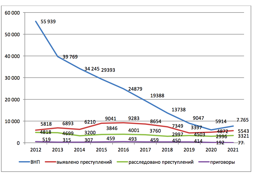 [10] Данные ФНС, МВД, Судебного департамента при ВС РФ, данные по приговорам за 2021 год даны за 6 мес.