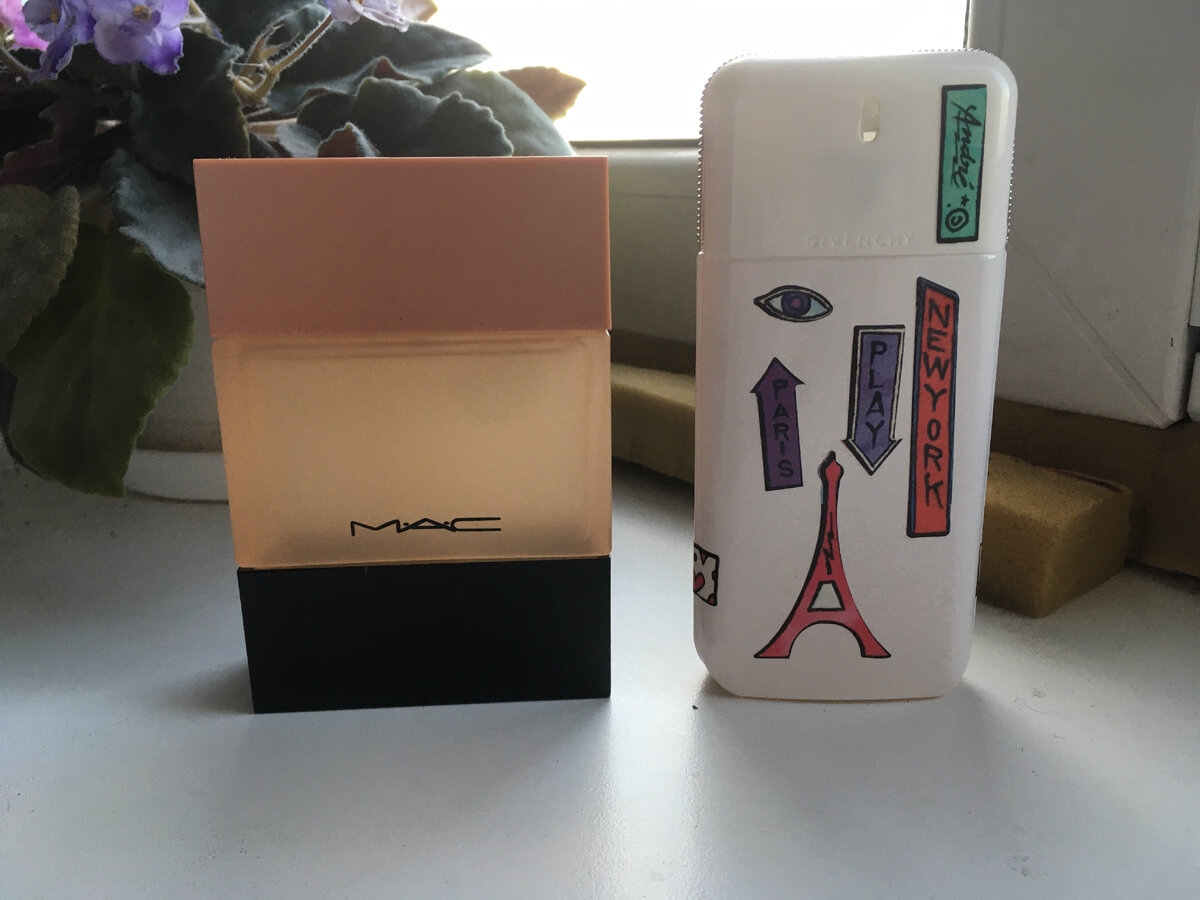 Из всех парфюмов, которые у меня есть, хочу немного рассказать о двух, которые я объединила в группу. Это MAC Creme de Nude и Givenchy Play for Her Arty Color Edition. Заказывала я их, не имея особого представления об этих запахах. Конечно, я читала описания парфюмерных композиций, но мне они ни о чем не говорили, поскольку я плохо умею представлять ароматы по описаниям компонентов. Дело в том, что запахи многих ингредиентов я не знаю, никогда не слышала их вне композиций (например, понятия не имею, как пахнет мускус). Но некоторые ожидания у меня все же были. Название Creme de Nude наталкивало меня на мысли о том, что аромат будет похож на запах крема Nivea или какого-то другого легкого и ненавязчивого средства по уходу за телом. Эксцентричное оформление флакона Play for Her Arty Color Edition вызывало у меня ассоциации с чем-то ярким, веселым и молодежным или с чем-то экстравагантным, богемным. На практике эти два аромата для меня оказались похожими друг на друга, я их называю "легк