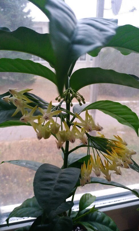 Хойя Мультифлора - это самая постоянно цветущая и прекрасная хойя. За 1,5 года она столько раз цвела, что реально не понимаешь, когда же она все-таки отдыхает от цветения и восстанавливает силы. Совершенно без проблемная хойя, которая еще при этом цветет. Это просто мечта любого человека. Единственное что - это можно немного залить ее в зимний период и только тогда она сбросит свое цветение, но если за поливом следить, то такого не должно произойти. Мультифлора тонколистная хойя и ее необходимо немножко чаще поливать, чем ее сородичей с толстыми листиками. Про это стоит помнить всегда! Иначе ее листики станут вялыми. Растет хойя быстро и за короткий промежуток времени может превратиться в шикарный кустик. Считается не лианой, а кустовым видом. Если цветок не формировать, то вырастает в три веточки максимум. Но, а если прищипывать, черенковать, то тогда кустик станет более ветвистым и прекрасным. Кстати, у хойи вкусный сладкий нектар. Но сама она ничем не пахнет, как другие виды. Поэ