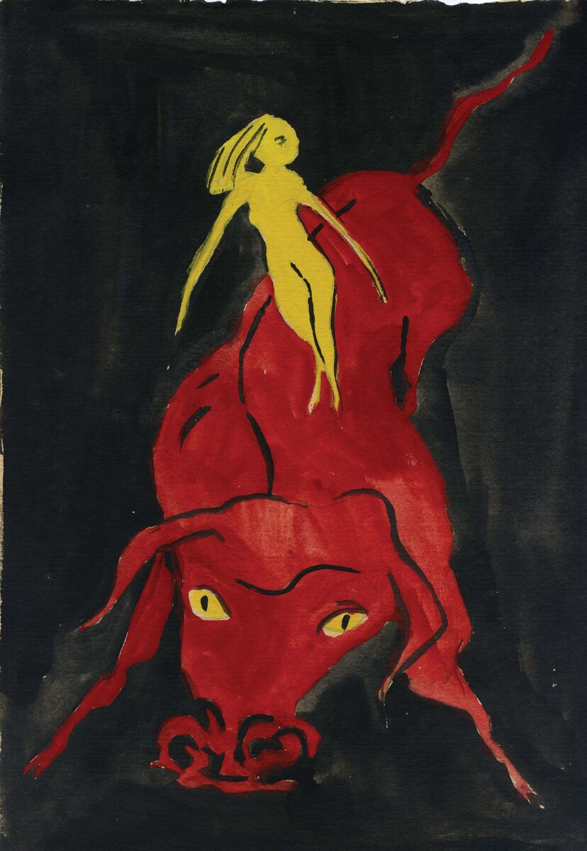 На заставке - работа И.А. Сапункова "На красном быке". Мне кажется, она соответствует рассказанному в заметке.