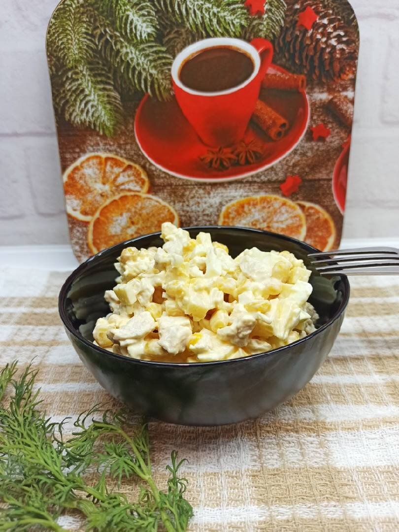 Очень вкусный и сытный салат с куриной грудкой, яйцами и кукурузой 😋. Можно приготовить на праздничный стол или к домашнему семейному ужину 🤗. Ингредиенты: куриная грудка, сыр твердый, кукурузы, яйца, майонеза, соль Способ приготовления: Приготовить все необходимые ингредиенты. Заранее отварить в подсоленной воде куриную грудку до готовности (примерно 20-25 мин) и отдельно отварить яйца вкрутую. Затем яйца охладить и очистить. Твердый сыр порежьте мелким кубиком. Яйца мелко порубите. Куриное филе остудите и измельчите. Его можно мелко порвать руками или порезать ножом. Добавляем кукурузу. Заправляем майонезом и перемешиваем. Салат к подаче готов ! Приятного аппетита 😋!!! Если Вам понравился мой рецепт и Вы приготовили по нему-мне будет очень приятно, если оставите свой фотоотзыв 🤗🥰. Интересно посмотреть, что у Вас получилось ❤️💐🤩. Мой видео рецепт можно посмотреть ⬇️