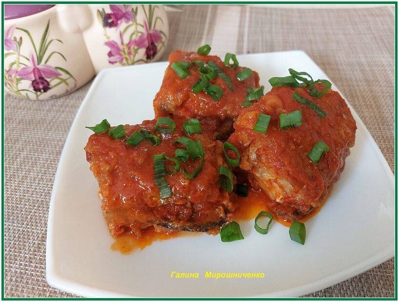 #пост Недорогое, вкусное и полезное блюдо. Ингредиенты: минтая, растительного масла, мука для панировки, соль, молотый перец, приправа для рыбы, Для подливки:, томатной пасты, небольшая морковь, луковица, соль, сахар Способ приготовления: Рыбу нарезать на порционные куски. Сдобрить солью и специями. Оставить на 15 минут. Рыбу запанировать в муке, выложить на разогретую с маслом сковороду и обжарить с двух сторон. Приготовить подливку. Лук и морковь спассеровать, добавить томатную пасту, развести кипятком до нужной консистенции. Довести до вкуса солью и сахаром. Покипятить подливку 3-5 минут, залить рыбу и потушить 5 минут. Подавать с рисом или картофельным пюре. Приятного аппетита!