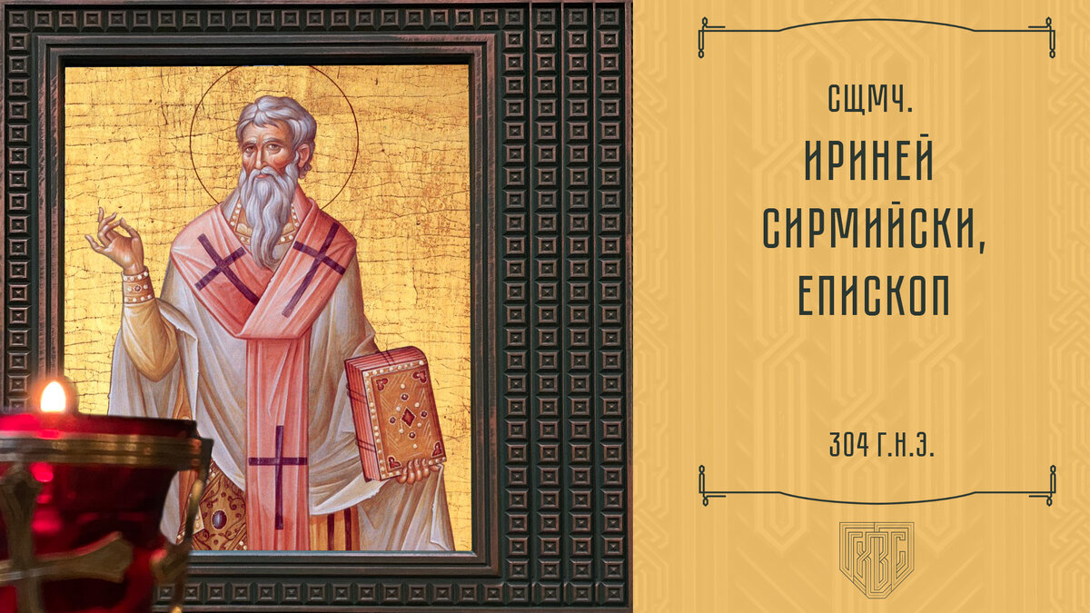 Священномученик Ириней пострадал во время гонения на христиан при римских императорах Диоклитиане и Максимиане (284–305). Он был пресвитером, вместе с женой воспитывал детей в христианском благочестии и пользовался большим уважением за свою образованность и строгий образ жизни. Позже он был поставлен епископом в город Сирмий в Паннонии (современная Сербия).