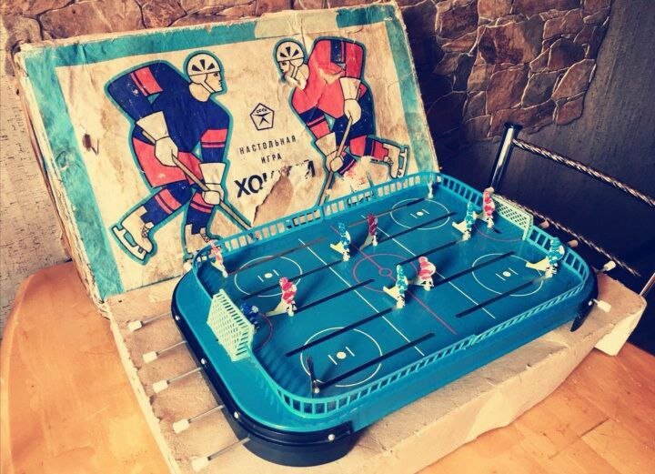 На сегодняшний день, полки магазинов ломятся от ассортимента игрушек. Машинки, куклы, вертолеты на пульте управления, наборы доктора и еще сотня другая различных вариаций игрушек для детей и взрослых... Но так было не всегда Конечно, игрушки в Советском союзе были, купить их в областных центрах городах поменьше не было проблемой. Однако цены на эти игрушки кусались и являлись желанным подарком на Новый Год или День Рождения. Некоторые игрушки советских детей и вовсе привозились из Германии и других западных стран, если у родителей были нужные связи и возможности. Были и такие игрушки которые, я уверен, удивили бы ваших детей и внуков сегодня. 1.Настольный Хоккей Огромная картонная коробка с игровым полем и фигурками внутри. Настоящая мечта любого советского мальчика, ведь как известно, только трус не играет в Хоккей. Игра помогала развивать реакцию, являлась предметом большого азарта и ярких дискуссий советских мальчишек во дворе. Да да, вы не ослышались. Многие наверняка помнят, как