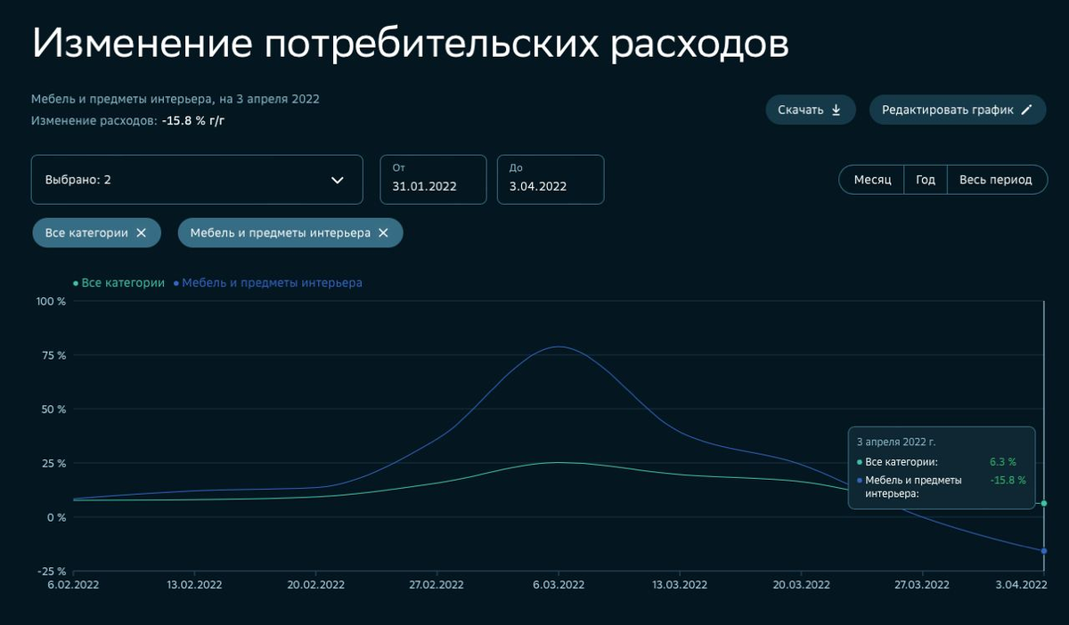 Коллеги, что происходит с продажами в апреле? Помните, кризис в 2008 г начался с офисной мебели, а потом уже перекинулся в 2009 г на бытовую? Получил тревожную информацию от нашего клиента в чате “Совет директоров” в Телеграм: “#черныйлебедь, похоже, конкретно прибыл в #b2b и #ОфиснаяМебель. Во всяком случае, моя еженедельная планерка с продажами показала, что по состоянию на 5-04-2022 за истекшую неделю имеем: - сделки в статусах "к оплате" и "оформление договора" составляют в сумме порядка 5...7% от планового месячного объема продаж на апрель (некризисного) - при обычных значениях порядка 50...70%; - примерно на сумму 0,5...0,7 от апрельского плана сделки перекочевали из "подготовка к реализации" в "наработки будущего периода" с обоснованиями "пока нет денег"; - ну, и порядка 20...40% наработок убыли в "сделка не состоялась", т.к. многим организациям, как бюджетникам, так и коммерсантам уже почикали расходы.” После этого другой наш клиент и участник чата, Директор по маркетингу комп