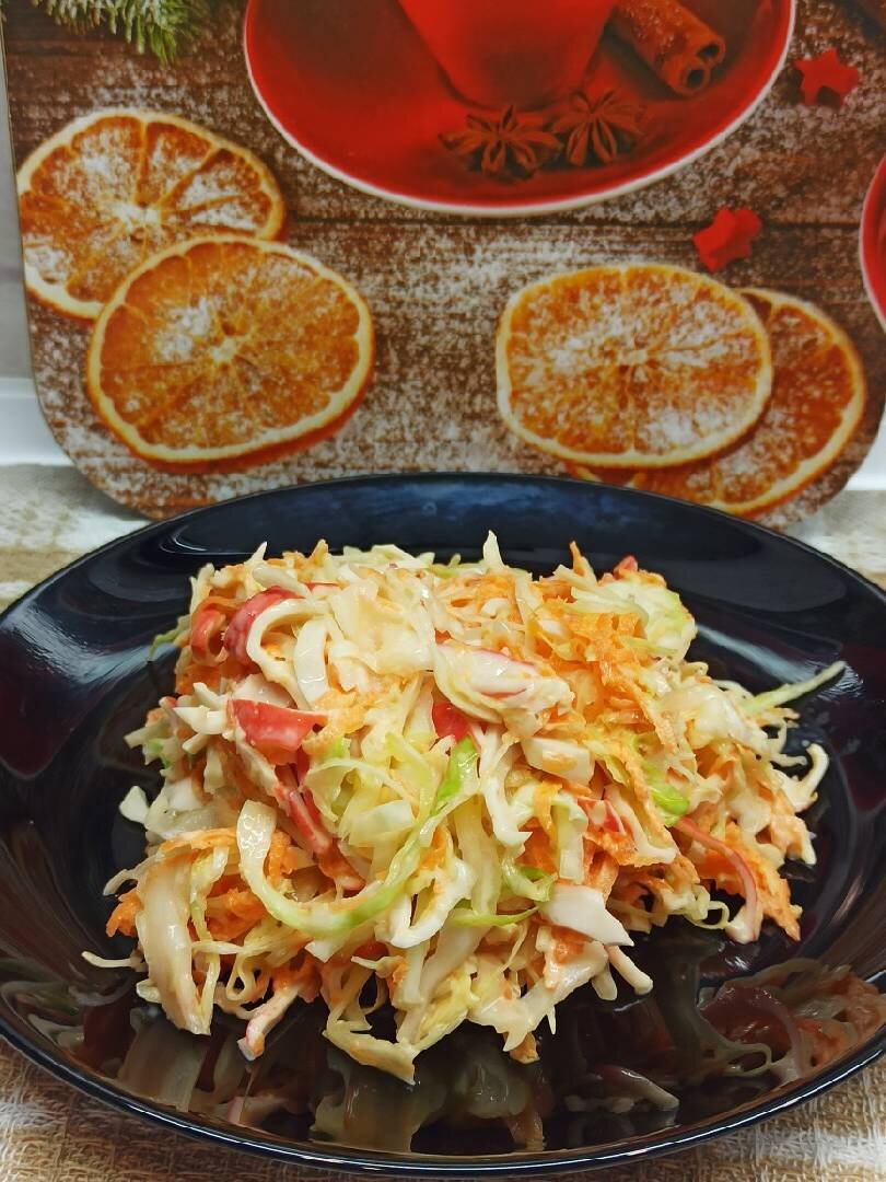 Ингредиенты: капуста белокочан, средн. моркови, мясо крабовое, майонеза, соль