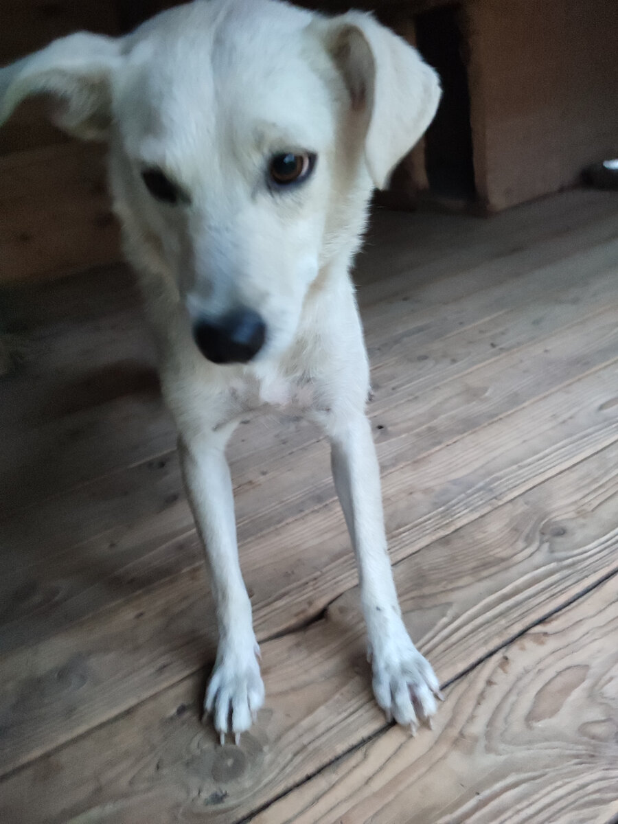 История Гретты началась со звонка одной моей знакомой. Она тоже волонтёр. Как то днём она с семьёй ехала на машине в город и на обочине увидела сидящую белую собачку, а рядом с ней сбитую кошку. Остановиться и подобрать собачку она не смогла, но она смогла позвонить и рассказать мне об этом. В нашем доме на тот момент даже уголка пустого не было и я вынуждена была отказать в помощи. Через несколько часов я сама выехали в город по делам. Проезжая место про которое мне рассказала приятельница и не увидев там никого я облегченно выдохнула. "Слава богу! собачку кто-то забрал или она убежала домой" подумала я. Но, не тут-то было, проехав пару километров я увидела лежащее на обочине тело собачки. Я сразу затормозила и побежала смотреть жива ли она. За эти доли секунд я миллион раз успела обвинить себя в её гибели, что сразу не отозвалась помочь. К моему великому счастью собачка была жива! Но подходить ко мне отказалась. Начала гавкать и отбегать на дорогу. Я тут же ушла в сторону машины. Поз