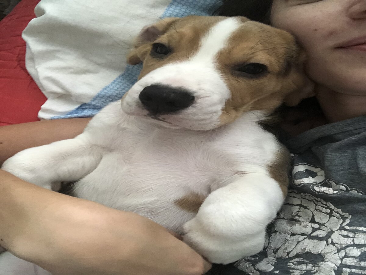 1 сентября 2021 года мой муж подарил мне самое милое существо на планете - БИГЛЯ🖤 Это гиперактивный малыш с неиссякаемым запасом энергии. Первое время он не отходил от нас и долгое время ходил в туалет где попало. И очень часто. Заводчик утверждал, что он ходит в туалет на пеленочку, что приучен. Нет. Не приучен. Бигли на столько эмоциональные, что могут обоссаться при виде хозяина. Сразу советую выделить ему место с подстилкой на полу, чтобы не шарахался по ночам в поисках места. Конечно, первое время он очень скулил ночью и постоянно шлёпал своими коготками по ламинату. Отправили его в соседнюю комнату, но скулёж был на столько громким, что не спали даже соседи через этаж. Пришлось по-очереди спать с ним на диване в соседней комнате, свесив руку. Зачем? Иначе он начинал скулить. А с рукой он быстрее засыпал. Эти ночи, конечно, были бессонными, потому что он периодически накладывал внушительную кучу какашек и мог в них с огромным весельем испачкаться. Поэтому приходилось вставать и